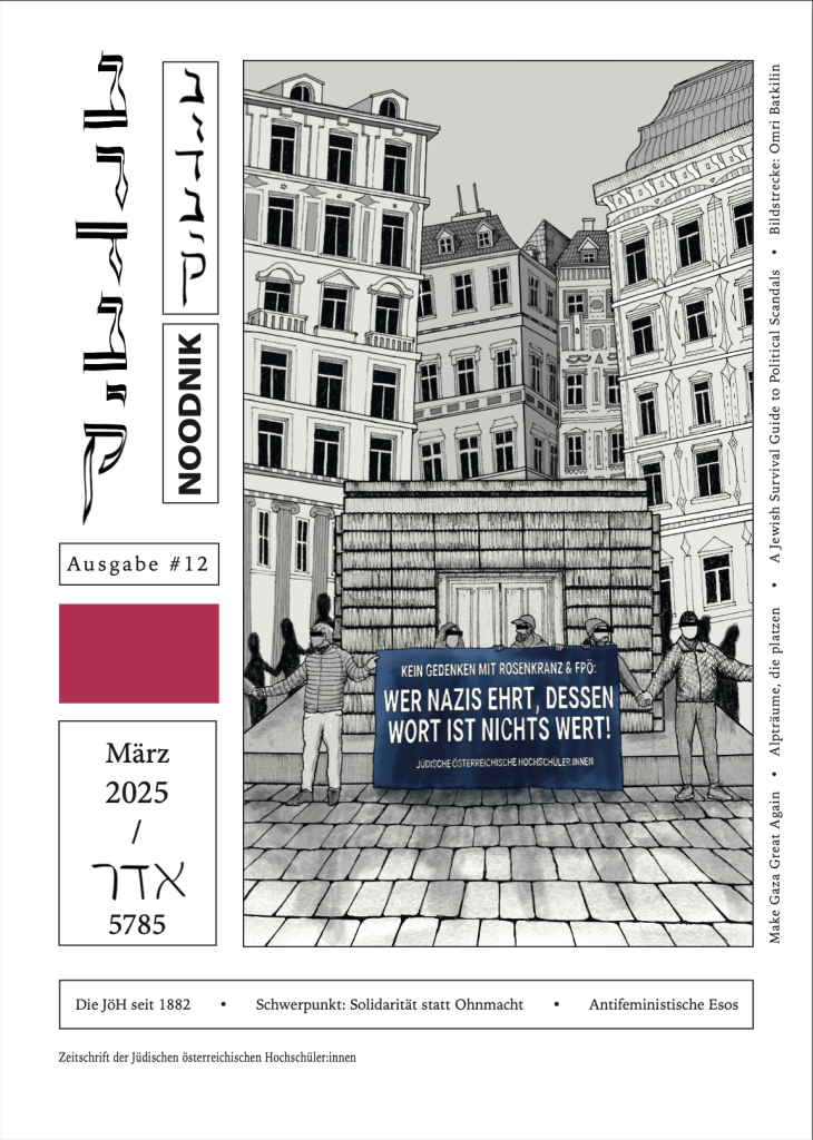 Ausgaben Ausgaben Jüdisches Selbstverständnis solidarität statt ohnmacht postnazismus in österreich queer jewish pride antisemitismus und die linke sonderausgabe 7. oktober ISRAEL, die (letzte) demokratie JÜDISCHE ZUKUNFT JÜDISCHES KULTURERBE FLUCHT UND MIGRATION JÜDISCHER WIDERSTAND JÜDISCHE DIVERSITÄT LUEGER SCHANDMAL